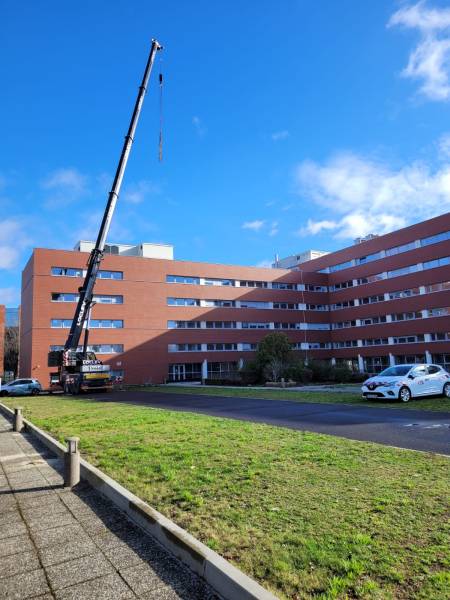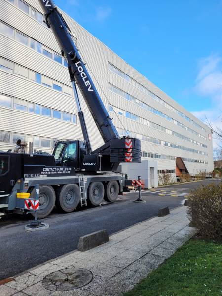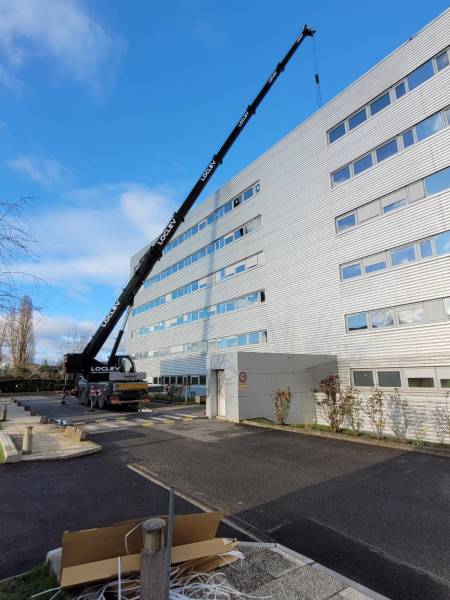 Une intervention sur une matinée visant à poser des CTA sur le toit du bâtiment. Un travail réalisé avec la LTM 1070.